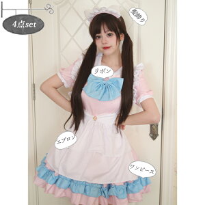 レースフリルの愛され妹系のメイド服♪ハロウィンに楽しめる セット内容:ワンピース+エプロン+カチューシャ+大きい蝶々結び 豊富な8サイズ展開♪女装用にもお使い頂けます。 柔らかい素材を使用して、手で触ると質感やクオリティなどが