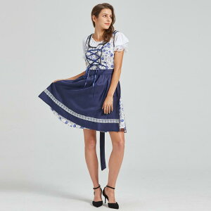 ・カテゴリ: 舞台衣装・スタイル: ビールガール風ドレス、エレガント・主な素材: ポリエステル・性別: ユニセックス・柄: 小花柄・カラー展開: ブルー、ホワイト・サイズ展開: S、M、L、XL、XXL、3XL、4XL、5XL・デザイ...