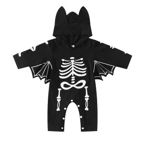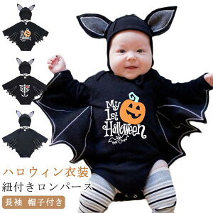 紐付きロンパース 長袖 帽子付き ハロウィン衣装柔らかなコットン素材でお肌にも優しく、長袖デザインで秋のお出かけにもぴったり。コウモリデザイン、3種類からお選びいただけます。さらに、かわいい帽子もセットでコーディネートが完