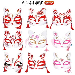 顔の半分が隠れるタイプの狐のお面10種類から選べます。模様や色が異なる和風デザインなので衣装や雰囲気に合わせて装着できます。 お面の両側には可愛い鈴と紐が付いているところがチャームポイントです。顔を動かすたびに揺れ動く鈴や紐は...