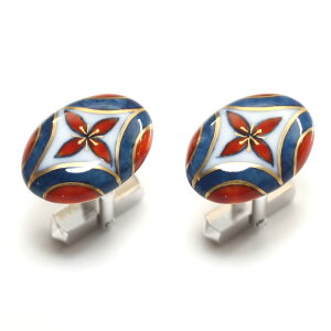 作 品 の 詳 細 本体 手作り手描き 伊万里焼 ★磁器 2色呉須濃 白金ライン 文字は金又はプラチナの磁器転写焼付。 サイズ 約20×15ミリ 厚さ5ミリ 重さ 約5グラム(片方) 金具 ★真鍮 ★ロジウムメッキ...