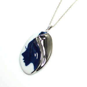作 品 の 詳 細 本体 手作り手描き 伊万里焼 ★磁器 オリジナル手びねりアート 人形シルエット 白金彩 サイズ 縦40・横27・厚さ9ミリ 重さ 約8グラム チェーン SV925 ★ロジウムメッキ...