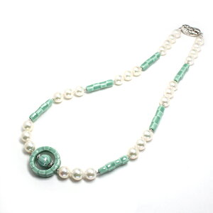 作 品 の 詳 細 本体 手作り手描き 伊万里焼 ★磁器 伊万里焼青磁アコヤパールネックレス 長さ 約41センチ 重さ 約40グラム 磁器 青磁(約9.0mm)/(約21.0×4mm) 真珠 アコヤ(約7.5〜8.0mm)...
