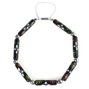 作 品 の 詳 細 本体 手作り手描き 伊万里焼 ★磁器 伊万里焼 黒釉花散らしブレスレット 長さ 内周約18センチ チェーン約6センチ 重さ 約8グラム 磁器 極小玉約5×5ミリ パイプ約5×12ミリ...