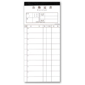 中華料理店・焼き肉店など、追加注文の多いお店におススメです。 ●外税式 ●行数:10行※1枚目は各行切り取れるミシン目付き(10本) ●50組(2枚複写)/冊 ●入数:5冊...