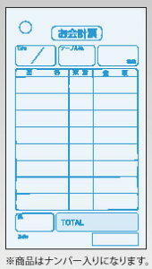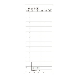 食堂・寿司・スナック等におすすめの御会計票です。連番で番号が入っております。 商品名:業務用 お会計表(会計伝票) 既製品/品番:S-02L 仕様:10行、穴あけ1ヶ所、単式伝票、領収書付(ミシン目入)...