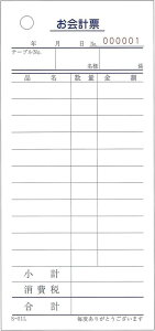 100枚つづり・20冊入です。 【外寸】75×177mm ■単式伝票勘定書付 お客様に会計金額だけを渡し、口に出さず請求金額を伝える事が出来ます。 (この場合は明細を載せません)<寿司店、スナックなど>