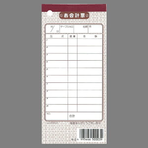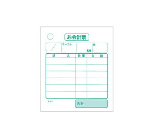 おあいそ票付き単式伝票です。小計欄があります。100番ナンバー入り■ 基本仕様複写枚数単式サイズ(縦x横)180x76mm行数11ページ数100ミシン目なし通しNo.ありテーブルNo.あり名様・人様あり担当者・係ありおあいそ票あり品名...