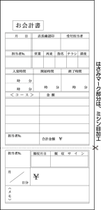 外寸:70×138mm(ミシン下サイズ) 1枚目ミシンなし 2枚目ミシンあり 複写会計伝票(天糊) 複写多状ミシン目入り伝票 お客様のオーダーが一度で決まらず追加オーダーが多...