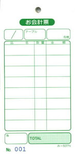 居酒屋・レストラン用にお使いいただける会計伝票。 品 番S-20F 2枚複写50組(ミシン15本)50組居酒屋・レストラン用 サ イ ズ85mm×215mm 包 装10冊シュリンク包装 入 ...