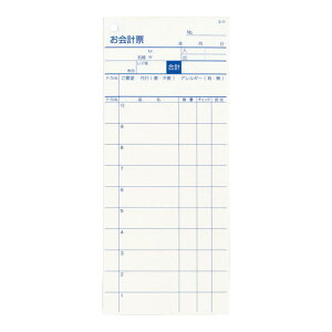 居酒屋・焼肉店用にお使いいただける会計伝票。 品 番S-20C 2枚複写50組(ミシン12本)50組 サ イ ズ85mm×195mm 包 装10冊シュリンク包装 入 数10冊 JANコード4975139557243