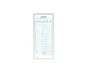 おあいそ票付き単式伝票です。当店の主力製品で、一番売れています。 : / 基本仕様 : / 複写枚数 : 単式 / サイズ(縦x横) : 180x76mm / 行数 : 13 / ページ数 : 100 / ミシン目 : なし / ...