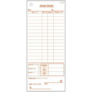 (100枚つづり・20冊入)【単式伝票】シンプルな1枚ものの伝票です。お客様のオーダーが一度で決まるお店向きの伝票です。<喫茶店・うどん・蕎麦屋など> 商品情報 サイズ外寸:75×177mm 8567200