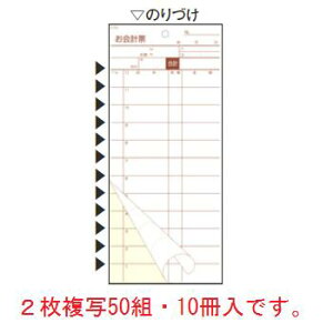 伝票 会計表 2P50組・10冊入です。 【外寸】85×208mm ■複写多状ミシン目入り伝票 お客さまのオーダーが一度で決まらず追加オーダーが多い場合や厨房と客席が 離れている場合に使用します。<br