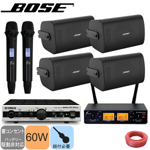 【セット内容】BOSE壁掛けスピーカーFS4SEB(2ペア)/YAMAHA ミキシングアンプ1/スピーカーケーブル100m/SOUNDPURE ワイヤレスマイクH-v8011s2/SOUNDPURE 2chワイヤレス受信機/ユーロブロ...