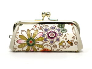 一般的によく見るタイプの印鑑ケースです。普通の大きさの印鑑が1本入り、ガマ口なので口が広く開き取り出しやすいです。外の根付は朱肉になっていて、いつでもすぐに使えます。小さめのスティックのりを横にしたくらいなので、バッグ