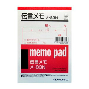 ●サイズ:※B7 ●タテ・ヨコ:125・88 ●罫内容:伝言メモ ●枚数:80枚 ●再生材配合率:中紙/古紙パルプ配合率70%エコマーク下段表示/古紙パルプ配合率73% ...