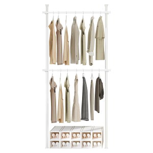 【商品仕様】素材:パイプ部:スチール(粉体塗装) 樹脂部:ABS樹脂、ポリプロピレン 部品:シリコーン キャップパッド部:ポリ塩化ビニル/ サイズ: 幅約80〜120cm x 高さ110〜300cm/ 耐荷重:パイプ:約60kg 棚板...