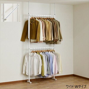 衣類収納アップハンガーワイド 伸縮式 ●衣類を段違いに収納できるので、服が取出しやすくて掛けやすい! 【商品による注意事項】 ※丸いハンガーパイプの場合、直径4.0cmまで対応...
