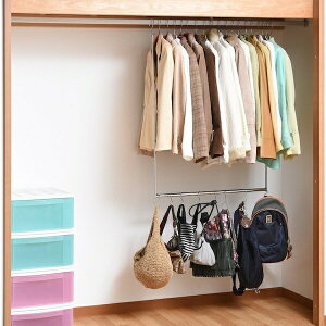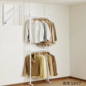 衣類収納アップハンガー標準 伸縮式 ●衣類を段違いに収納できるので、服が取出しやすくて掛けやすい! 【商品による注意事項】 ※丸いハンガーパイプの場合、直径4.0cmまで対応...