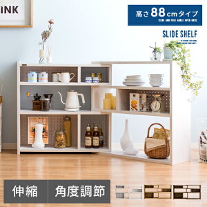 自由度の高い伸縮・角度調節で置きたいスペースにぴったりフィット。 壁際にはもちろん、コーナーラックやパーテーションとしてなど、幅広いアレンジをお楽しみ頂けます。 さらに、高い収納力や、置くだけで絵になるインテリア性にも