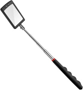 すい。LEDライト付きの点検鏡で、夜間の車点検も快適に。「自在な角度調整」点検鏡の角度は360度自由に調整可能。四角型の鏡で確認範囲も広く、見落としが少なくなります。「伸縮機能付き」