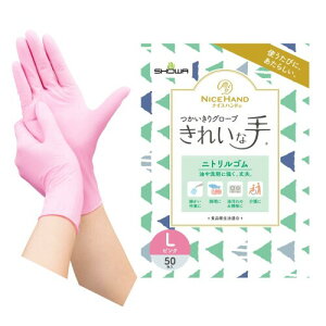 ショーワグローブ(Showaglove) ナイスハンド きれいな手 つかいきりグローブ ニトリルゴム 50枚入 ピンク Lサイズ 1函 【使うたびに、あたらしい】伸縮性があり薄く手にぴったりフィットして、細かな作業に適したニトリルゴム...