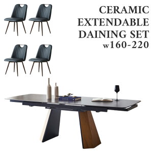 ■セット内容 160-220cmダイニングテーブル×1台 ダイニングチェア×4脚。■商品の特徴 耐熱や傷に強い素材セラミックを天板に使用しております。見る角度によって表情をかえる重厚で洗練された脚。