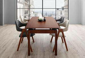 お間違いのない様ご購入下さい。こちらは6点セット(テーブルW140-240+チェア4脚+ベンチ1脚)の販売ページです。商品名北欧テイスト 天然木ウォールナット材 伸縮ダイニン