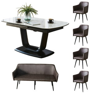 商品について ■セット内容 ダイニングテーブル×1 ダイニングチェア×4 ダイニングベンチ×1 ■商品の特徴 [テーブル] 耐熱や傷に強い素材セラミックを天板に使用した艶やかで光沢の美しい天板が存在感抜群。 4人から8人くらいまでゆったり