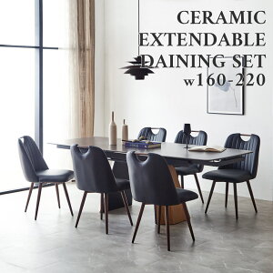■セット内容 160-220cmダイニングテーブル×1台 ダイニングチェア×6脚。■商品の特徴 耐熱や傷に強い素材セラミックを天板に使用しております。見る角度によって表情をかえる重厚で洗練された脚。