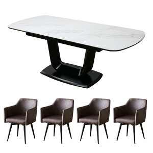 bakugai202510 熱やキズ、汚れに強い耐久性のあるセラミック天板を使用したエクステンションダイニングテーブルとハイバック仕様のカンティレバーチェア4脚のセット 幅140cmから幅180cmに広げて急な来客にも対応できます ス...