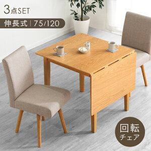 伸長式ダイニングテーブルセット 3点セット 回転チェア エクステンション 食卓テーブル 伸縮テーブル 伸縮式 テーブル 折りたたみ コンパクト 木製 大理石 おしゃれ 北欧 2人掛け 4人掛け