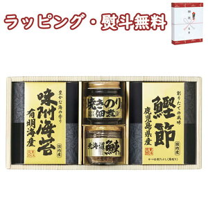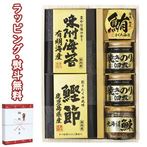 磯のり90g・梅かつお90g・柚子風味なめ茸85g・鯛みそ100g・かにのり佃煮90g×各1 四季折々の海の幸、山の幸を風味豊かな佃煮にしました。素材の良さを大切に丹精込めたびん詰の詰め合わせです。 箱サイズ...
