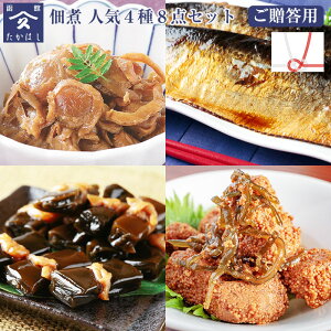 ◆商品名 佃煮 ギフト 函館山久たかはし 人気4種8点セット(ホタテしぐれ煮・北海道産にしん甘露煮・日高産一口昆布巻・鱈子と昆布の旨煮 各2袋)(贈答用) タカハシ食品 ◆内容量 ...