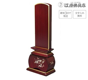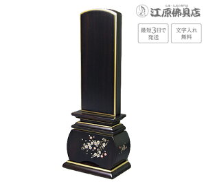 桜模様の蒔絵が、黒塗の中で映え美しいデザインとなっています。心をこめて丹念に作り上げ呂色仕上げに匹敵する鏡面のような美しい表面にまで仕上げた高級お位牌です。経験豊かな職人集団により、一貫生産体制を確立した工場で生産されております。多年...