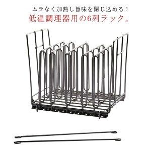 ムラなく加熱し旨味を閉じ込める!低温調理器用の6列ラック。ステンレス鋼で作られた錆、染色、または腐食の心配はありません。調整可能な仕切りで食材を綺麗に整列させられることで熱が均等に行き渡ります。お湯に触れることなく...