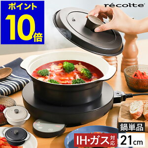 「卓上IHヒーター」と同色のIH対応の両手鍋。焦げ付きにくいセラミックコーティング加工で、揚げ物や低温調理に対応し、ガス火でも使用可能。recolte IH対応鍋 同色で揃えて卓上調理を楽しむIH対応の両手鍋