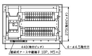●分岐回路数: 10●予備回路数: 2●主幹 A: 50●分岐回路 2P1E: 8●分岐回路 2P2E: 1●盤定格 A: 60●分岐回路 IH用 2P2E 30A 200V: 1●太陽光発電システムにジャストフィット! ●商用電源側...