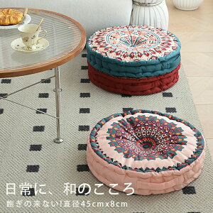 クッション 厚手 45×45cm ボヘミアン柄 フロアクッション 大きい 丸 床 座る 大きめ 体圧分散 抱き枕 車 イス クッション 分厚い 背もたれ 大人 子供 座ぶとん おしゃれ モダン 北欧 韓国風...