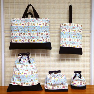 レッスンバッグ(キルティング)・シューズケース(キルティング)・体操服袋・お弁当袋・コップ袋の5点セットになります。 各商品サイズ 1.レッスンバッグ タテ:約30cm / ヨコ:約40cm 2.シューズケース...