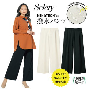 裾上げ済みですぐ履ける! 水を弾くMINOTEC使用ワイドパンツ 着痩せ効果が狙えるすっきり見えシルエット 両裾に施したベンツで足さばきも軽やか [素材] ミノテック? ポリエステル69%・複合繊維(ポリエステル)31% [特長] ・...