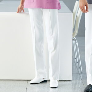 テーパードパンツ 事務服 AR5612 レディース 女性用 ■素材:コンフォータブルニット ■混率:ポリエステル100% ■仕様:ゴムinカーブベルト、ジャストウエスト 制電テープ、ファスナー前あき...