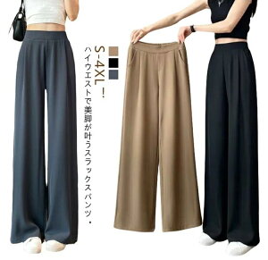 S-4XL!ハイウエストで美脚が叶う♪スラックスパンツ。 ストン落ちシルエットで脚のラインを拾わずすらっと脚長美脚見せ♪ カジュアルにもオフィスにも着回しできるのもポイント♪ ウエストはバックゴムでおしゃれに楽ちんな履き心地◎