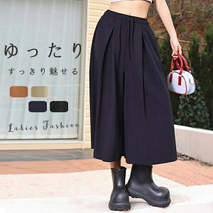 ワイドパンツ キュロット パンツ レディース 7分丈パンツ ガウチョパンツ 七分丈 夏 フレアパンツ ガウチョ パンツ ウエストゴム クロップド きれいめ ロング丈 ボトムス クロップド丈 ワイド シンプル...