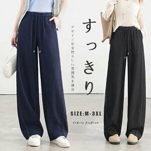 デニムパンツ ストレートパンツ レディース 夏 春 ロングパンツ ワイドパンツ ロング丈 カーブパンツ デニム ボトムス 長ズボン デニム 涼しげ 薄手 ウエストゴム ボリェーム感 カジュアル ゆったり...