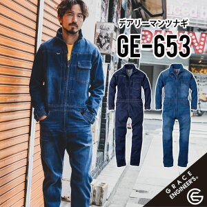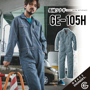 [ワークプロ] GRACE ENGINEERS グレイスエンジニアーズ 通年 長袖 つなぎ GE-105 綿100% 色:ブラックヒッコリー サイズ:3L