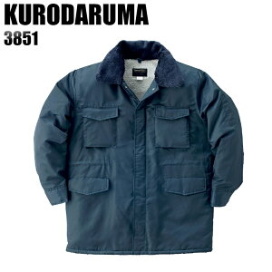 ワークユニフォーム KURODARUMA 3851 防寒コート 撥水 衿ボア 収納式フード 男性用