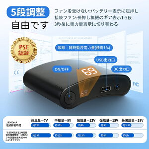 超大容量バッテリー】電池は新開発18000mAH超大容量リチユウムバッテリー、外寸9.5*8*2.5cm、従来電池容量から23%以上の拡大、サイズから30%以上の軽量化を実現し、片手にも収めるコンパクトサイズ。電気安全に関する一般的な...