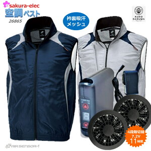 クロダルマ26865空調ベスト+さくらオリジナル大容量バッテリーファンセット 【数量限定購入プレゼント付き♪】 空調ウェアをセット毎購入で熱ボウシプレゼント! ・アウトドア・インドアでの使用可能な、スポーティなデザインのファン